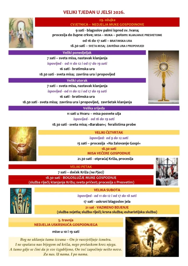 Raspored bogoslužja u Velikom tjednu – Jelsa